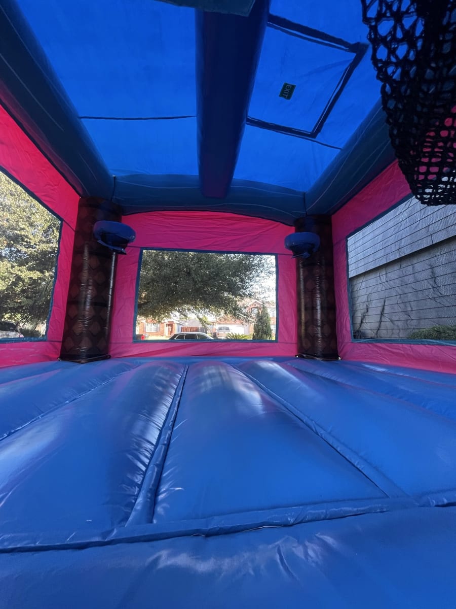 This inflatable features a bounce house with palm trees, complete with green leaves and a trunk. The bounce house provides a safe and exciting play area for children. Its the perfect solution for creating a memorable and fun experience for kids.