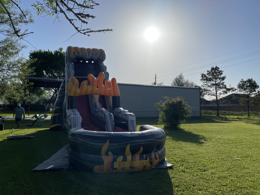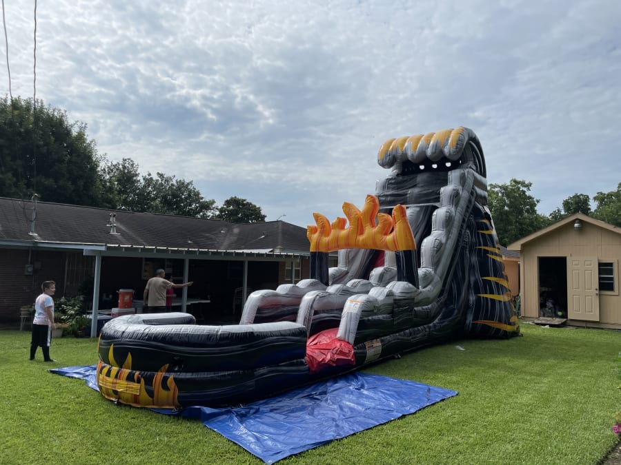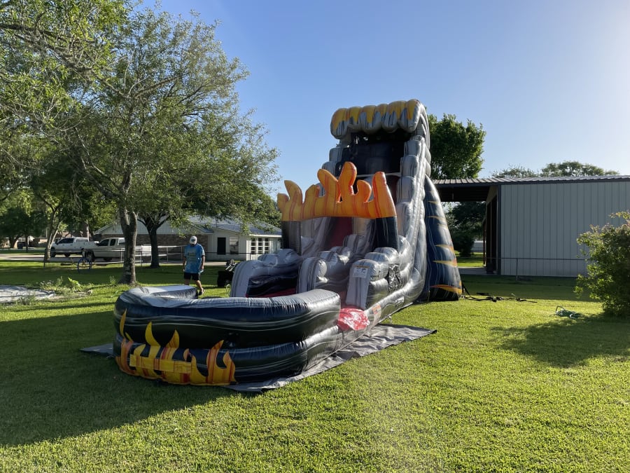Introducing our giant flames water slide, perfect for even teens that like to have fun. With realistic looking flames on the bottom and top of the slide, and a big pool landing filled with water so you can make a big splash at your next event!